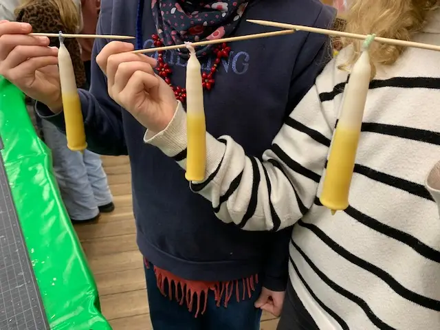 Draußen ist es nasskalt, aber trocken. Genau das richtige Wetter um Kerzen zu ziehen. So ist eine gemütliche Advents- und Winterzeit garantiert. Oder dient sie doch als Weihnachtsgeschenk? Auf jeden Fall hat haben die Kinder der Fuchs-Klasse vollen Einsatz gezeigt und eine schöne Zeit miteinander verbracht.